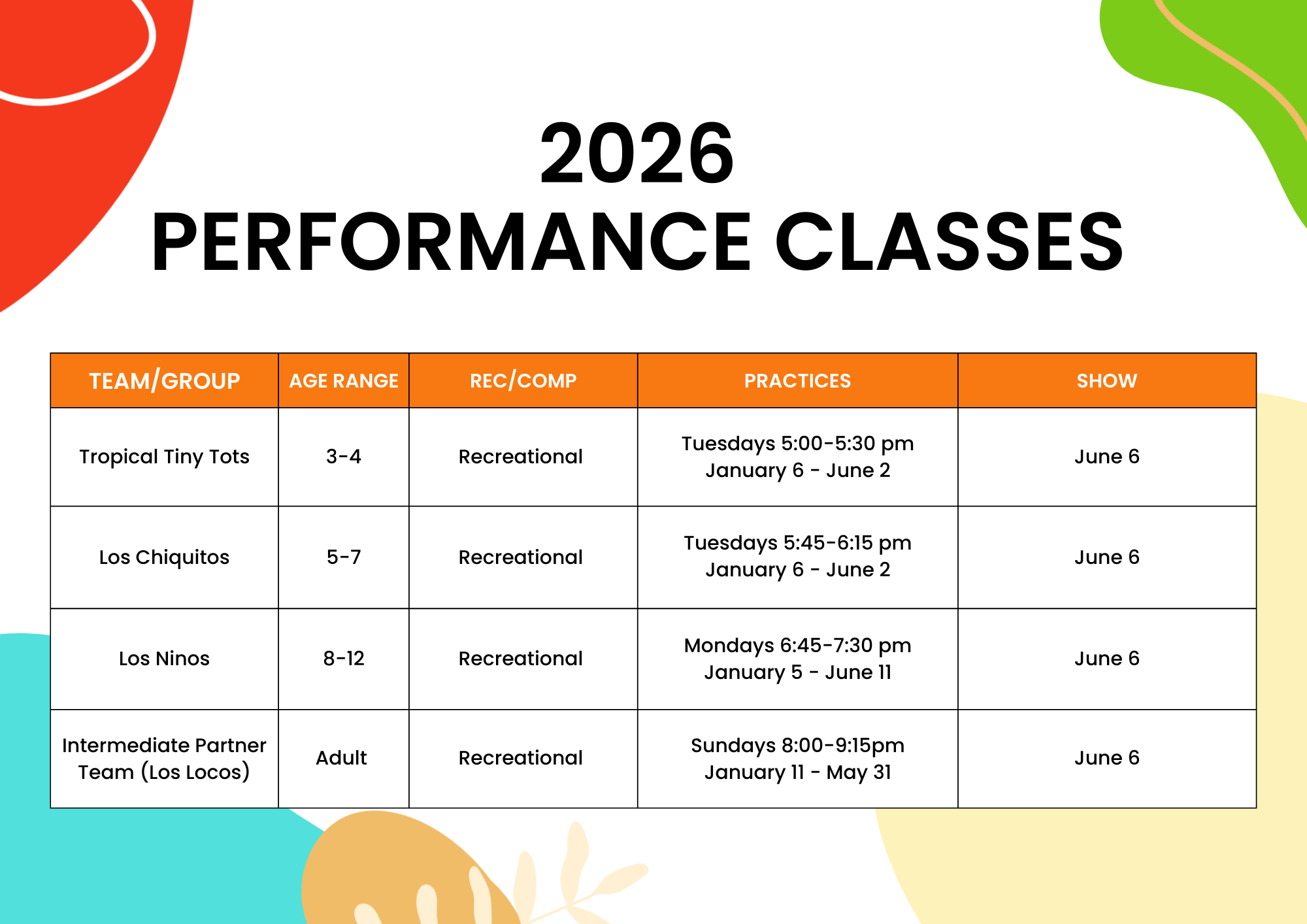 2026 PERFORMANCE & COMPETITIVE CLASS SCHEDULE